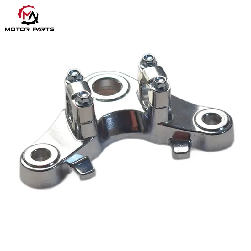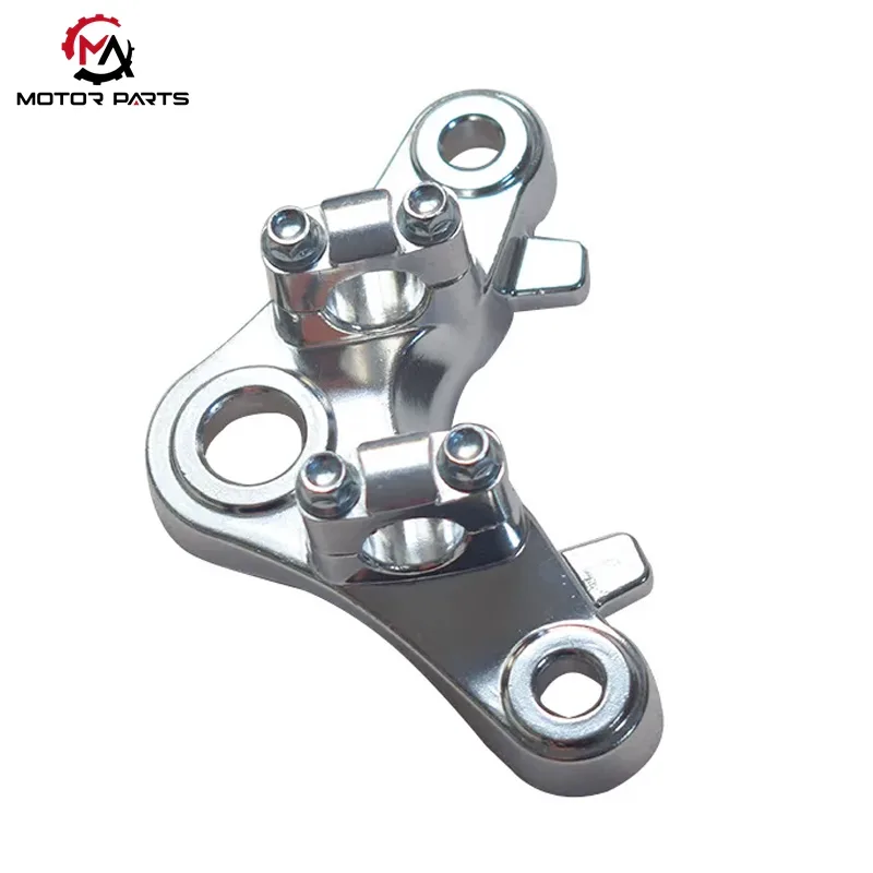En el sistema delantero de la motocicleta CG125, la placa de conexión superior es el componente central de carga que conecta la horquilla delantera, el amortiguador y el cuadro. La placa de conexión superior para motocicleta Honda CG125 adopta el diseño estructural en forma de boomerang estándar de la industria, logrando una distribución de carga estable y un control preciso de la dirección a través de la colocación de orificios científicamente diseñados.